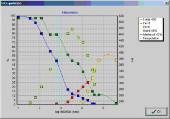 Durante il processo di simulazione di trattamento termico, per esempio tempra, per ogni punto del pezzo forgiato o laminato viene calcolata la velocità di raffreddamento e contenuto della fase. Dopo il calcolo per tutti punti viene determinata la percentuale del contenuto di fase nel pezzo finito (ferrite, perlite, bainite, martensite). Cosi vengono calcolate le proprietà dell’acciaio dopo il trattamento termico, per esempio durezza, limite di rottura, resistenza al trazione, ecc. (ill. 2).